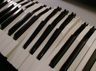 Die Tasten sind hinten mit Federn gelagert (silberne Federn für die weißen, goldene für die schwarzen Tasten). Alle Federn werden mit einer Spitzzange ausgehängt...