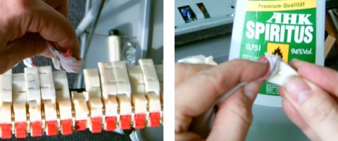 Da die Hämmerchen leicht ölig sind, sollten die Klebeflächen vorher mit Spiritus gereinigt werden, damit sie fettfrei sind.